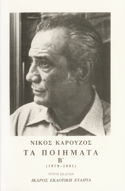 ΣυγγραφέαςΟ Νίκος Καρούζος (1926-1990) του Δημήτρη και της Κωνσταντίνας, το γένος Πιτσάκη, γεννήθηκε στο Ναύπλιο. Ο πατέρας του ήταν δάσκαλος στρατευμένος στο Εθνικό Απελευθερωτικό Μέτωπο, διώχτηκε κατά τη διάρκεια του εμφυλίου και εξορίστηκε μετά τη συνθηκολόγηση της Βάρκιζας. Η μητέρα του ήταν κόρη ιερωμένου και δασκάλου. Κατά τη διάρκεια των γυμνασιακών του χρόνων ο Καρούζος έδρασε στην ΕΠΟΝ και εξορίστηκε στην Ικαρία (1947) και στη Μακρόνησο (1951), από όπου έφυγε τελικά το 1953 μετά από νευρικό κλονισμό. Παντρεύτηκε δύο φορές, το 1955 τη Μαρία Δαράκη, με την οποία έζησε λίγους μόλις μήνες και το 1963 τη Μαίρη Μεϊμαράκη, από την οποία χώρισε το 1980. Από το 1981 και ως το τέλος της ζωής του τον συντρόφεψε η Εύα Μπέη.